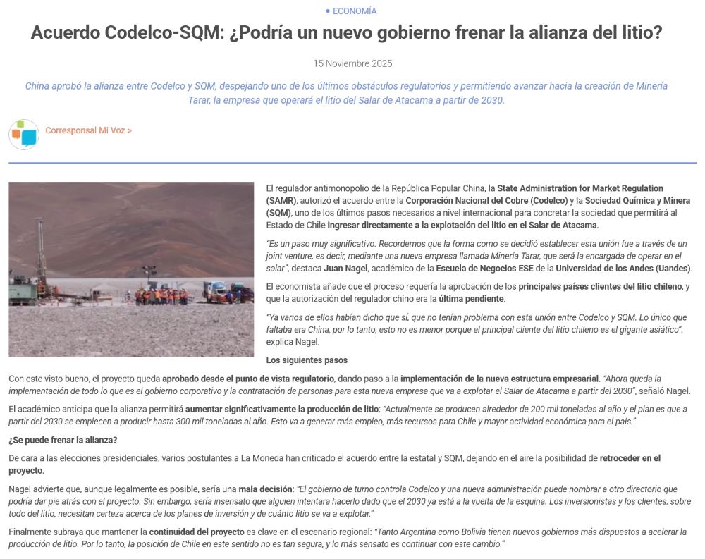 Codelco y SQM reciben la aprobación del regulador de la República Popular de China para su acuerdo de asociación - (El Rancagüino)