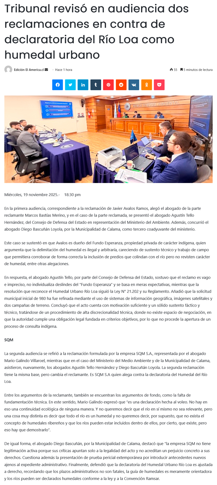 Tribunal revisó en audiencia dos reclamaciones en contra de declaratoria del Río Loa como humedal urbano - (regionesnoticias.cl)