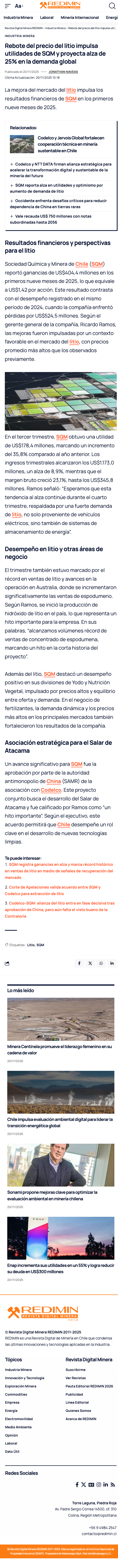 SQM reporta alza en utilidades y optimismo por aumento de demanda de litio - (redimin)