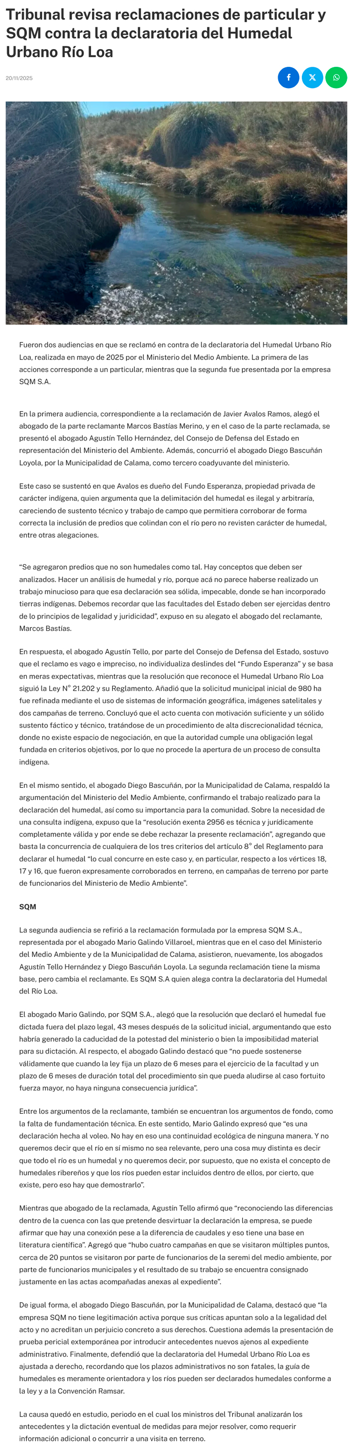 Particular y SQM cuestionan legalidad y técnica de la declaratoria del Humedal Urbano Río Loa - (elreferente.cl)