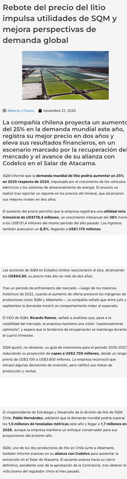 Repunte del litio impulsa ganancias de SQM a máximo de dos años - (bloomberglinea.com)