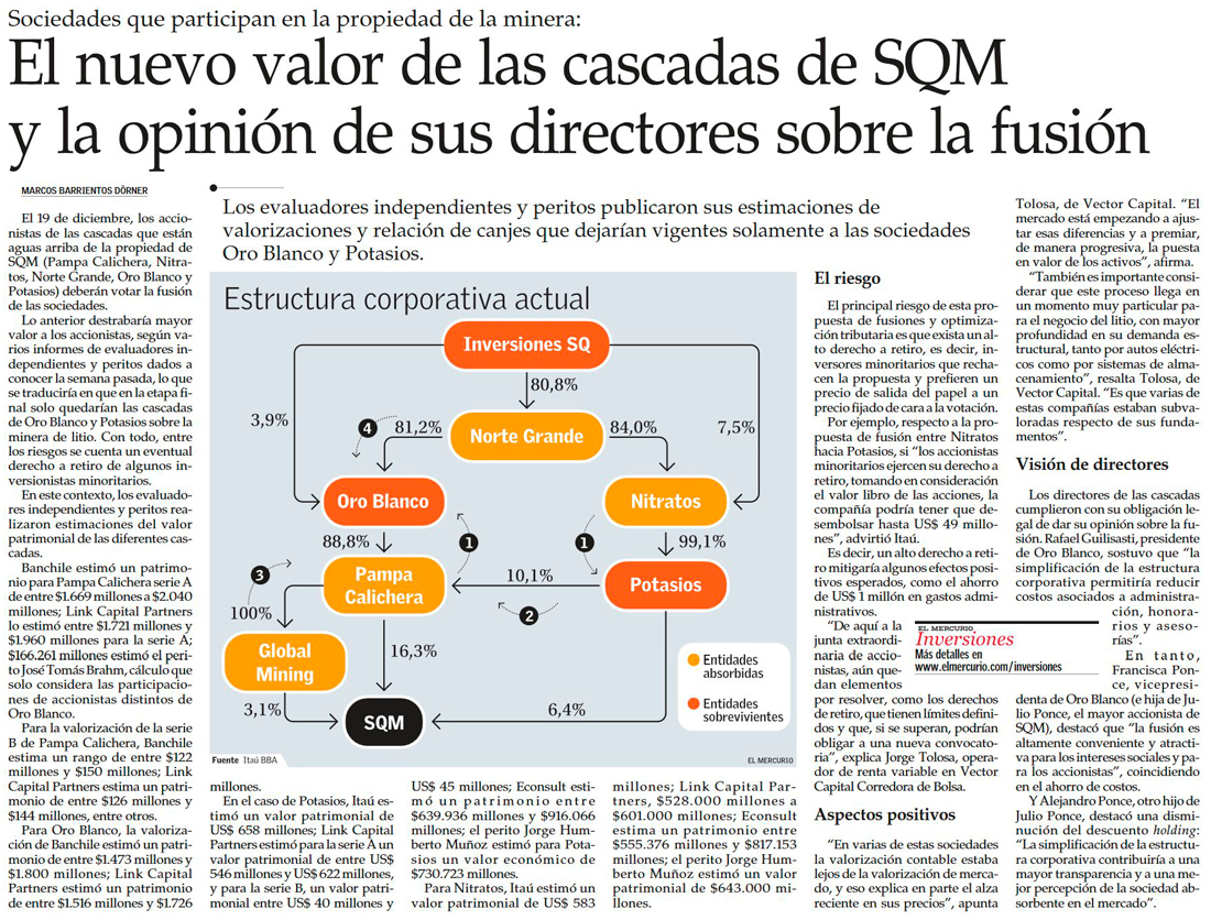 El nuevo valor de las cascadas de SQM y la opinión de sus directores sobre la fusión - (El Mercurio Inversiones)