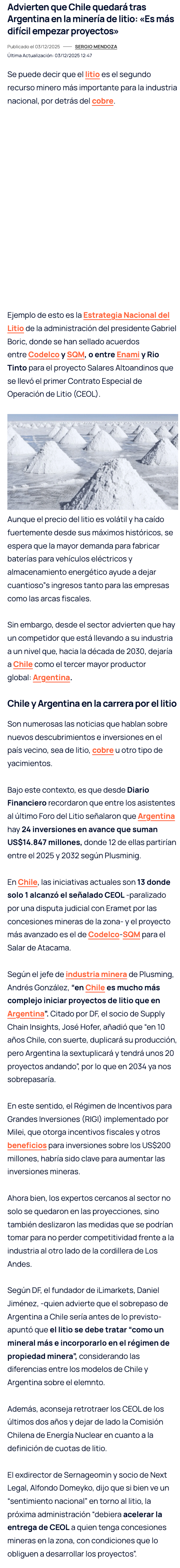 Advierten que Argentina superará a Chile en la minería de litio: "Es más difícil empezar proyectos" - (biobiochile online)