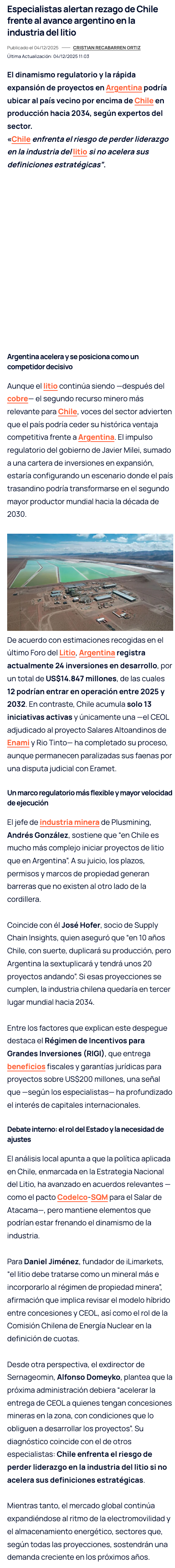 Advierten que Chile quedará tras Argentina en la minería de litio: «Es más difícil empezar proyectos» - (chanarcillo.cl)