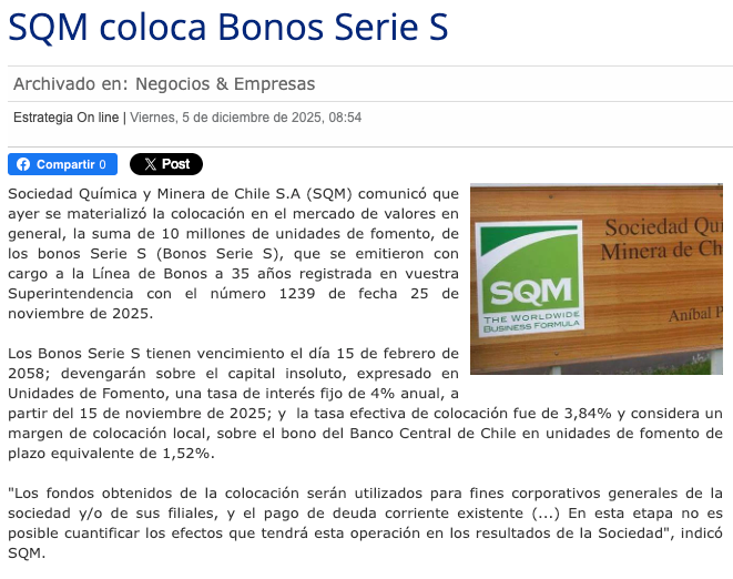 SQM se suma al boom de bonos híbridos en Chile para financiar inversiones - (reporteminero)