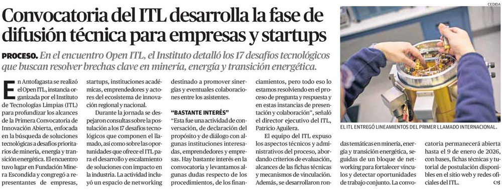 Open ITL profundiza los 17 desafíos tecnológicos de la primera convocatoria de innovación abierta - (elreporterodeiquique)