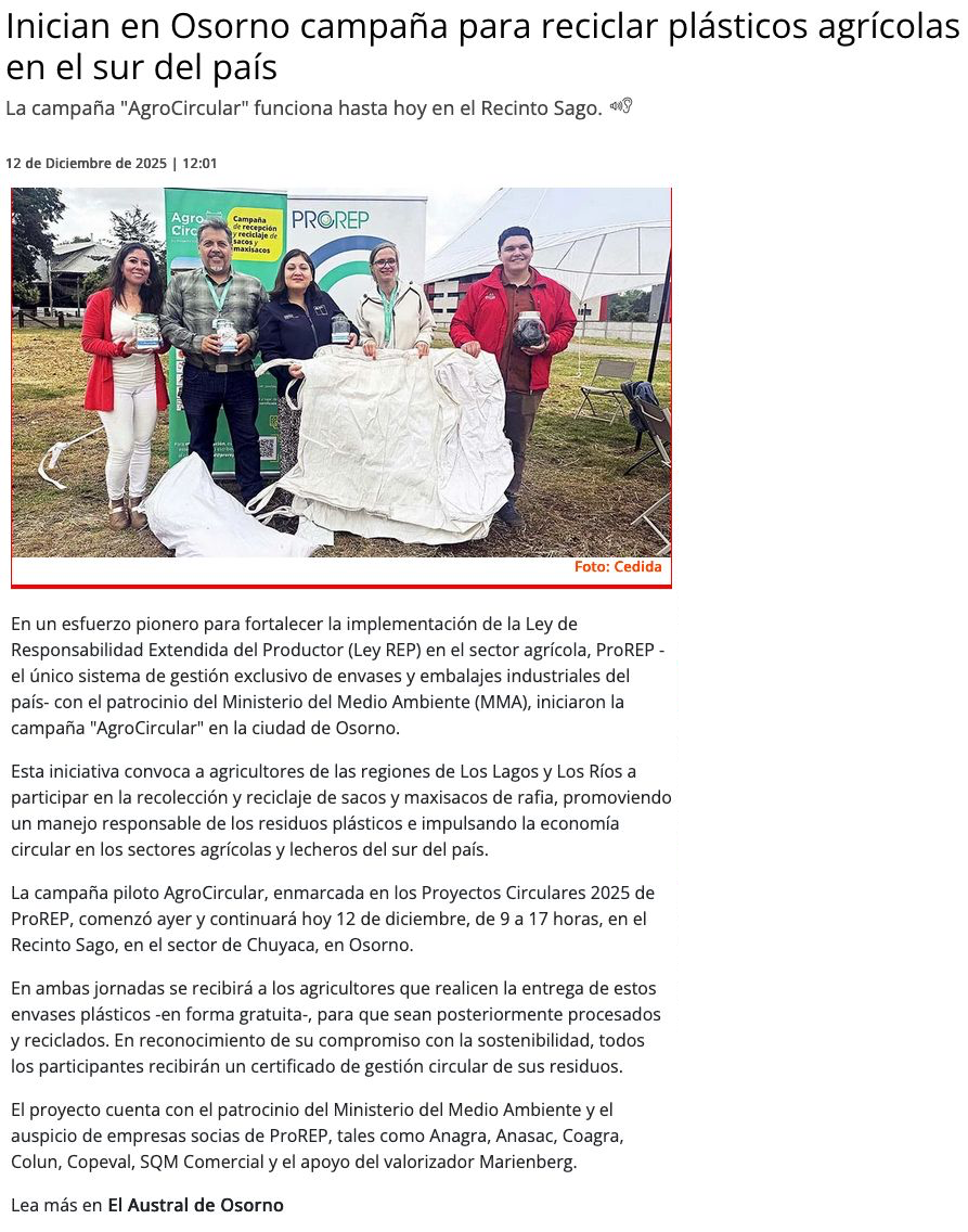 Osorno realiza “AgroCircular”: campaña para reciclar plásticos agrícolas en el sur del país - (diariosostenible.cl)
