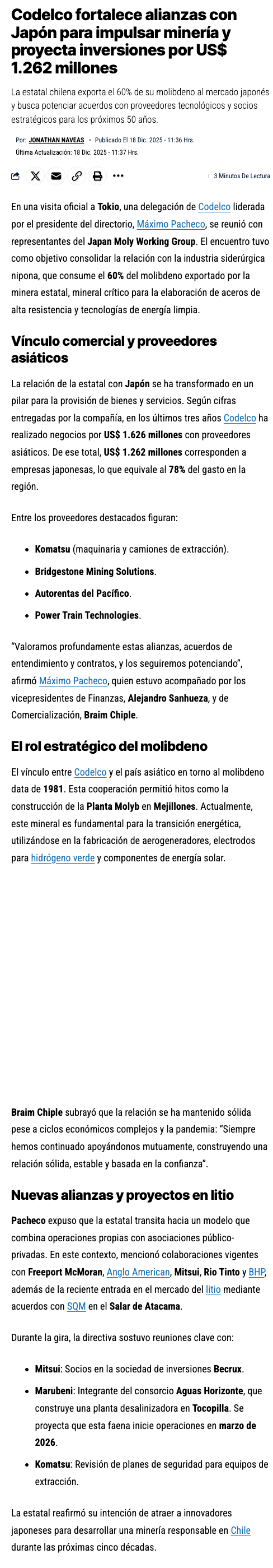 Codelco fortalece su vínculo con empresas japonesas y proyecta nuevas alianzas para una minería sostenible - (eldinamo)