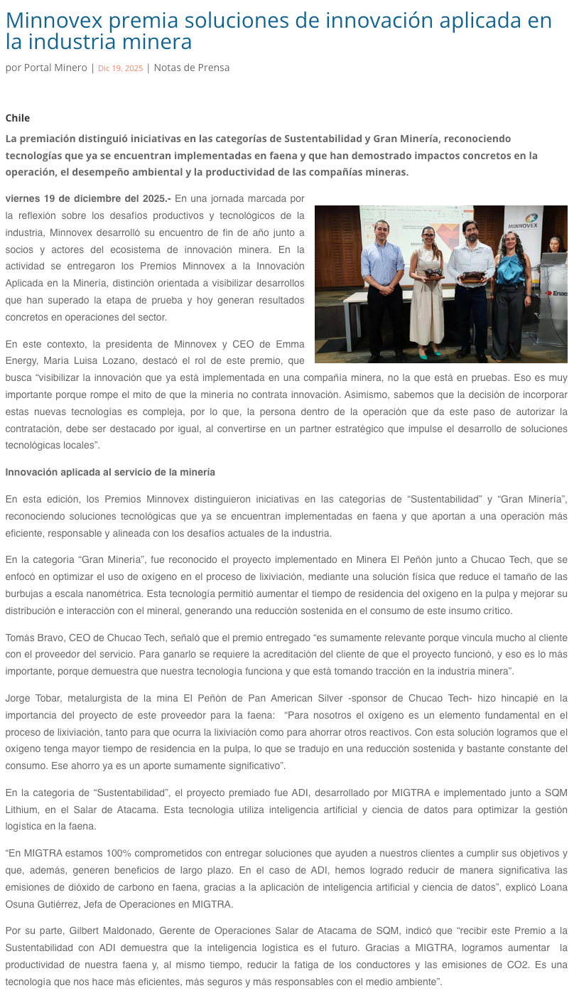 Minnovex destaca innovación tecnológica ya implementada en la gran minería - (norteonline.cl)