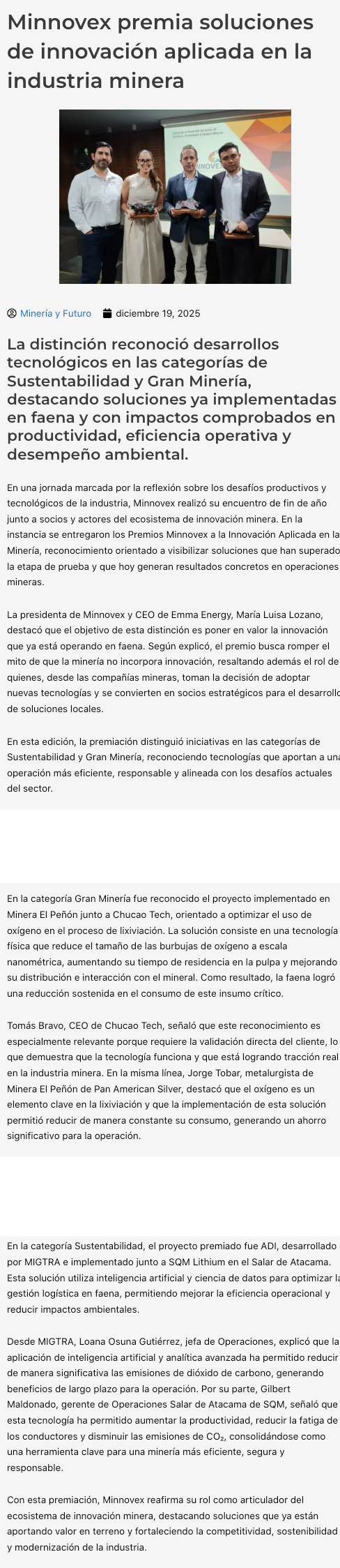 Minnovex destaca innovación tecnológica ya implementada en la gran minería - (norteonline.cl)