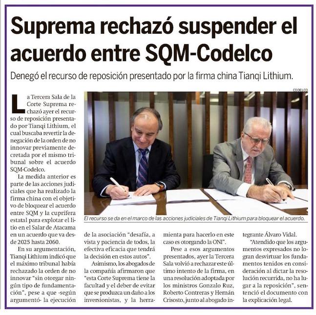 Portazo a Tianqi: Corte Suprema rechaza suspender acuerdo entre SQM-Codelco - (antofagasta.tv)