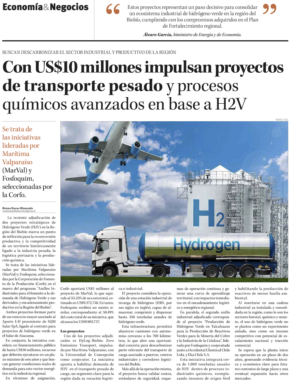 Corfo adjudica dos proyectos de Anillos Industriales para el fomento a la demanda de H2V en la Región del Biobío - (revistaei.cl)