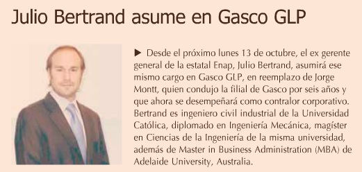 Julio Bertrand asume como gerente de Gasco GLP - (El Mercurio de Santiago)