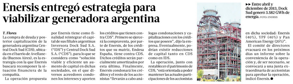 Enersis lanza plan para capitalizar filiales argentinas - (Diario Financiero)