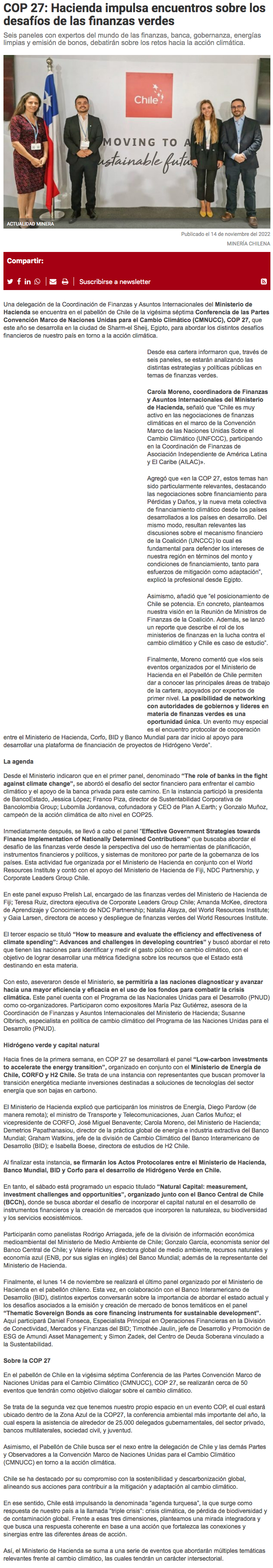 Por segunda vez, Chile tiene su propio pabellón en una COP - (El Mercurio de Santiago)