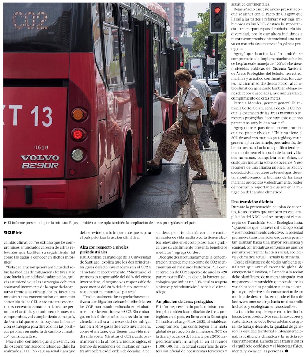 Por segunda vez, Chile tiene su propio pabellón en una COP - (El Mercurio de Santiago)