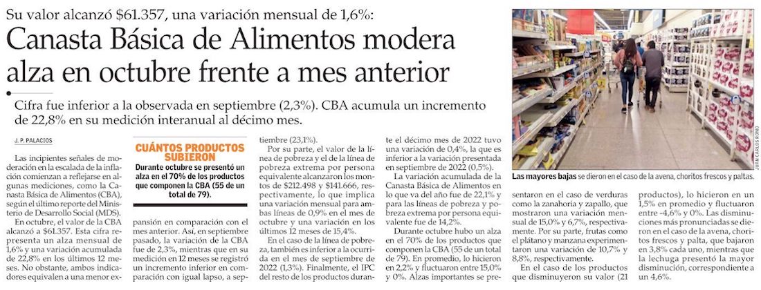 Otra señal de desaceleración de los precios: canasta básica de alimentos registra su primera baja desde diciembre de 2021 - (Pulso)