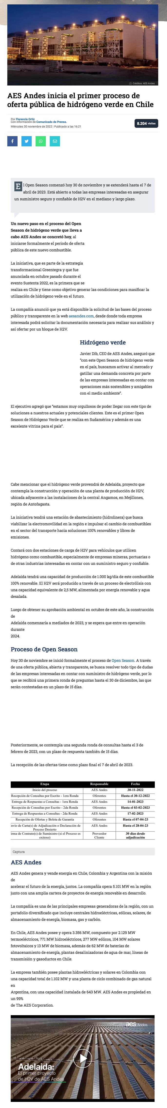 AES Andes inicia el primer proceso de oferta pública de hidrógeno verde en Chile - (g5noticias.cl)