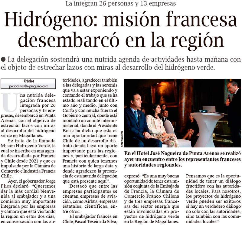 Impulsan en Magallanes alianza chilena francesa “Misión Hidrógeno Verde” - (La Prensa Austral)