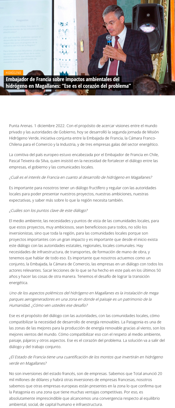 Impulsan en Magallanes alianza chilena francesa “Misión Hidrógeno Verde” - (La Prensa Austral)