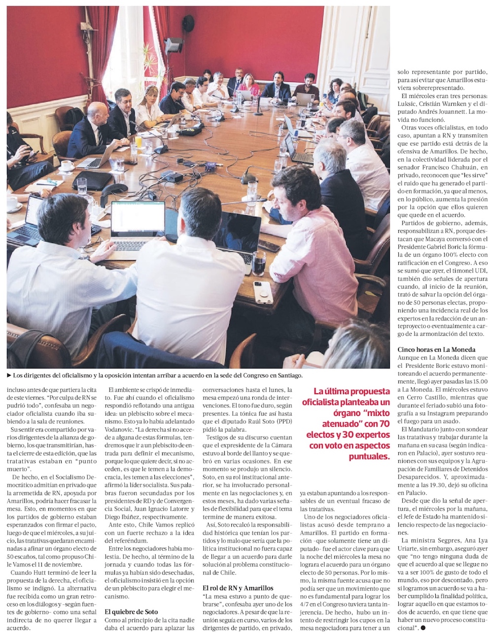 Partidos retoman negociaciones en semana clave para llegar a un acuerdo constituyente - (El Mercurio de Santiago)