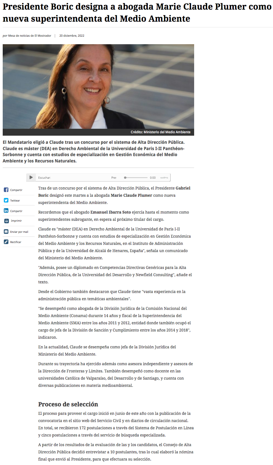 Nombran a nueva líder de la Súper del Medio Ambiente - (El Mercurio de Santiago)