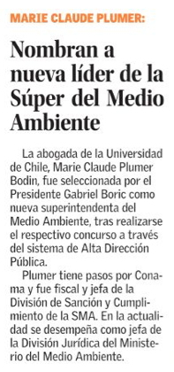 Presidente Boric designa a abogada Marie Claude Plumer como nueva superintendenta del Medio Ambiente - (El Mostrador)