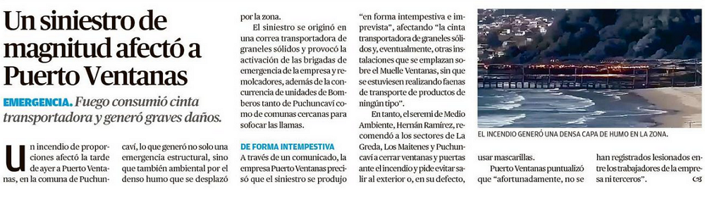 Incendio industrial afecta a muelle de Puerto Ventanas en Puchuncaví - (biobiochile online)