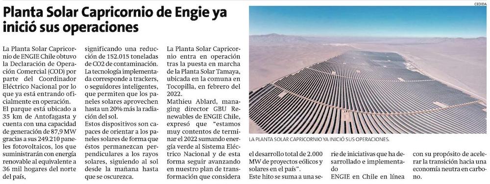 El complejo Solar Capricornio de Engie inició su etapa de operación comercial - (El Mercurio de Antofagasta)
