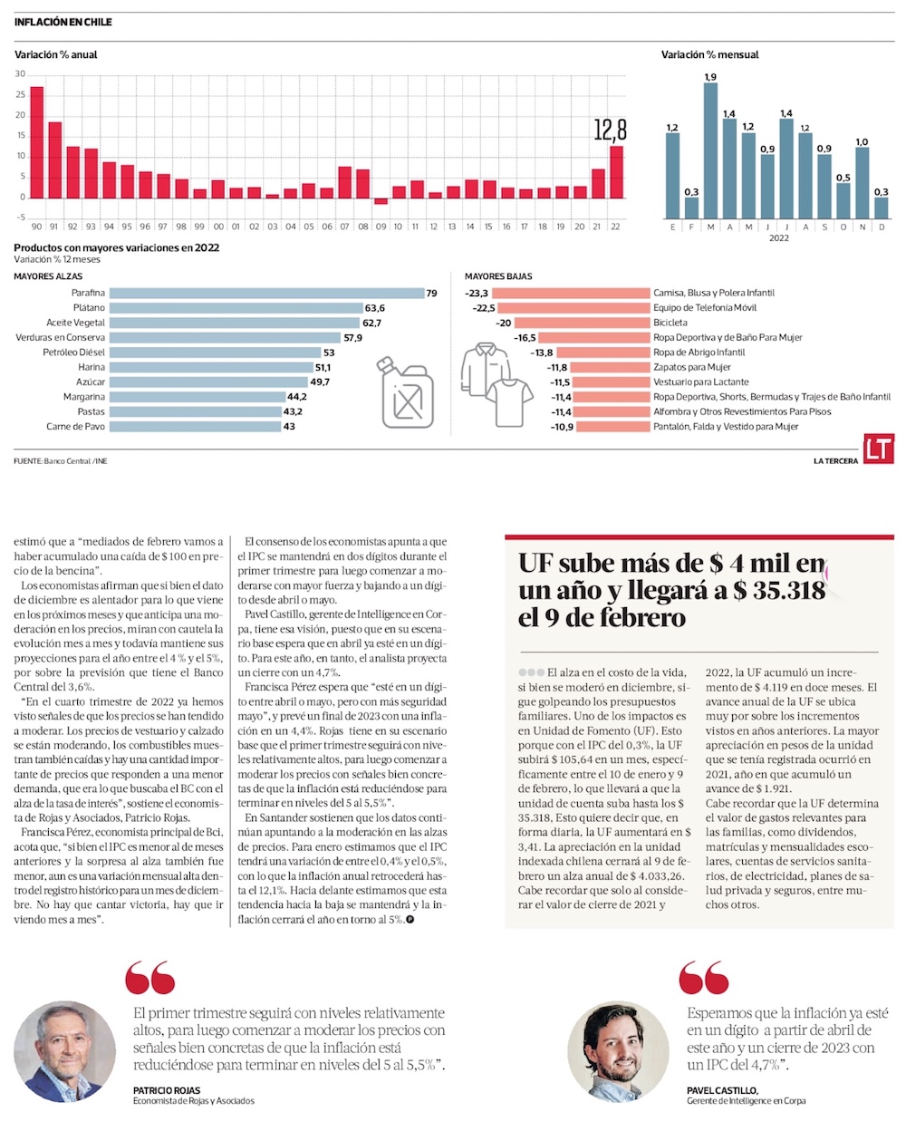 Inflación llega a 12,8% en 2022 y analistas delinean retos para contener las alzas este año - (El Mercurio de Santiago)