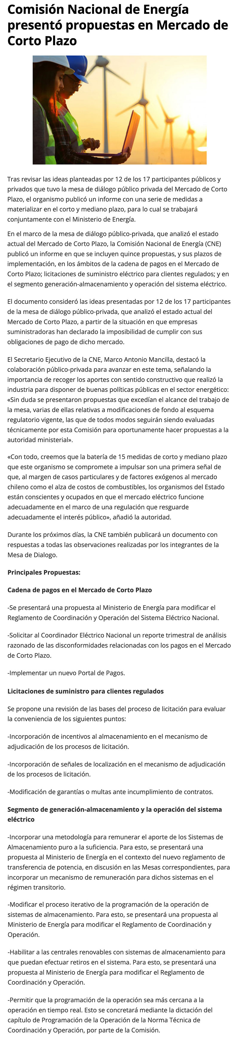 Comisión Nacional de Energía presentó propuestas en Mercado de Corto Plazo - (portalminero)
