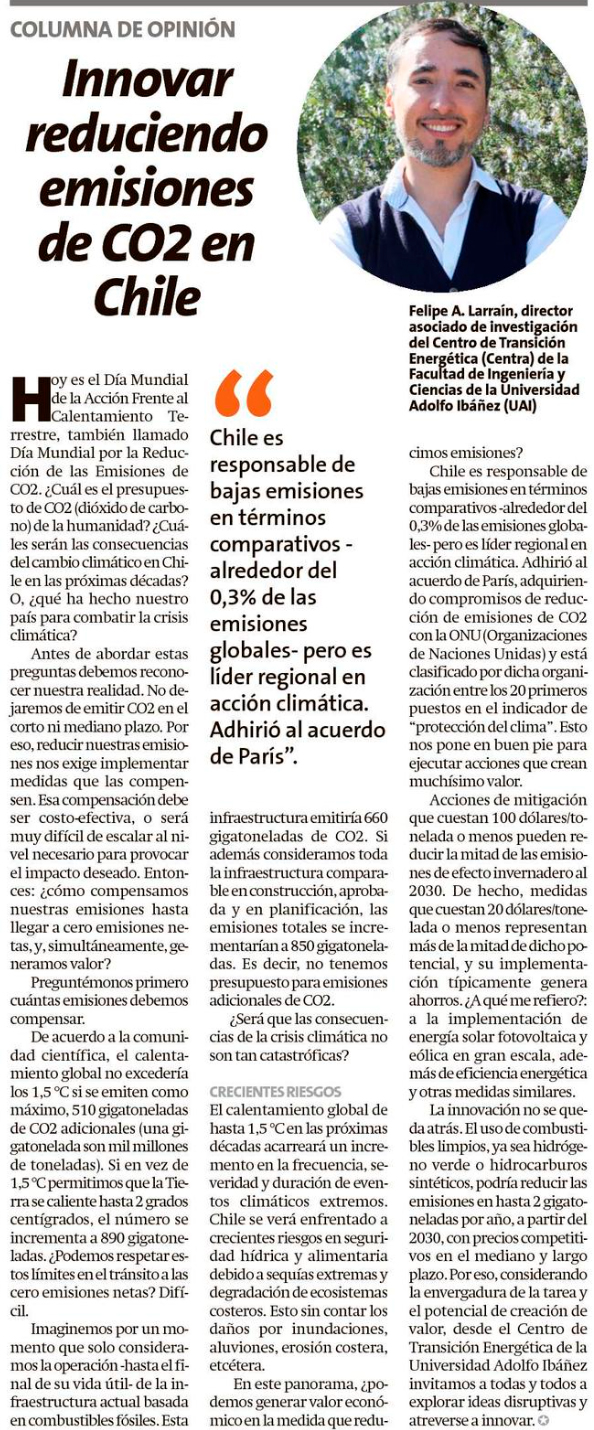 Innovar reduciendo emisiones de CO2 en Chile - (El Mostrador)
