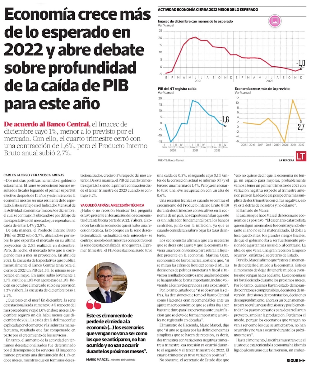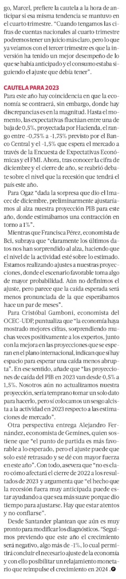Tras crecer 2,7% el año pasado, mercado ve margen para una caída más atenuada de la economía en 2023 - (Diario Financiero)