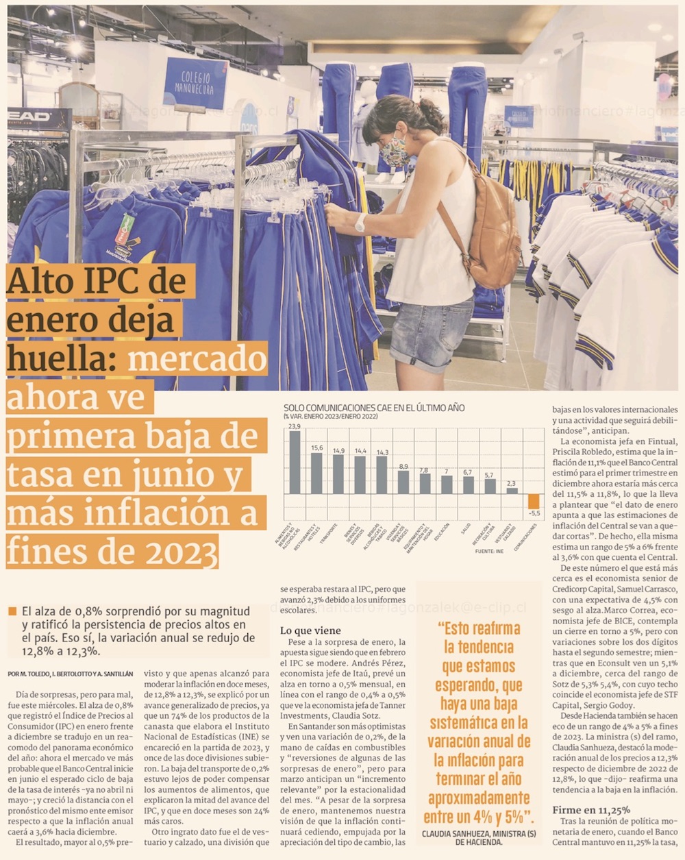 IPC de enero sorprende al alza y crece opción de aplazar recorte de tasas para junio - (El Mercurio de Santiago)