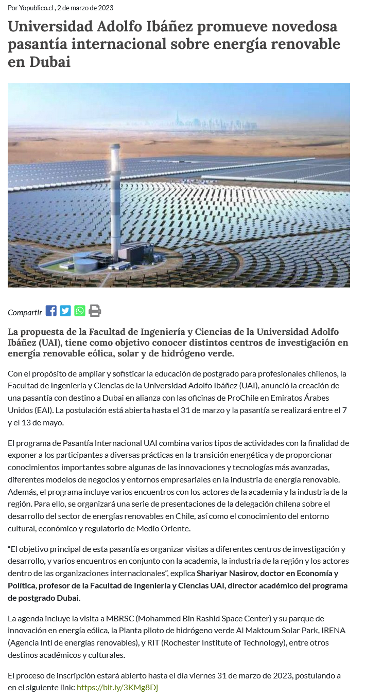 UAI promueve novedosa pasantía internacional sobre energía renovable en Dubai - (portalminero)