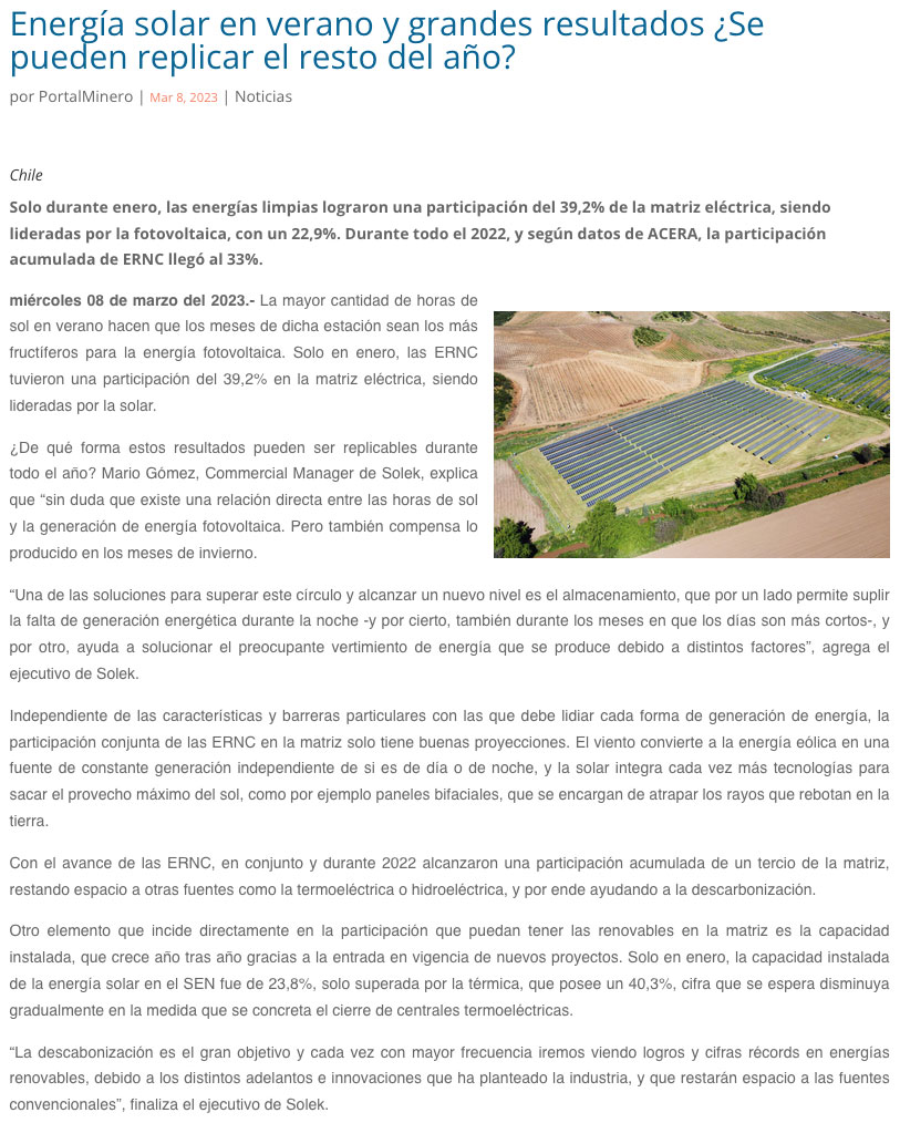 Energía solar en verano y sus buenos resultados para todo el año - (El Diario de Atacama)