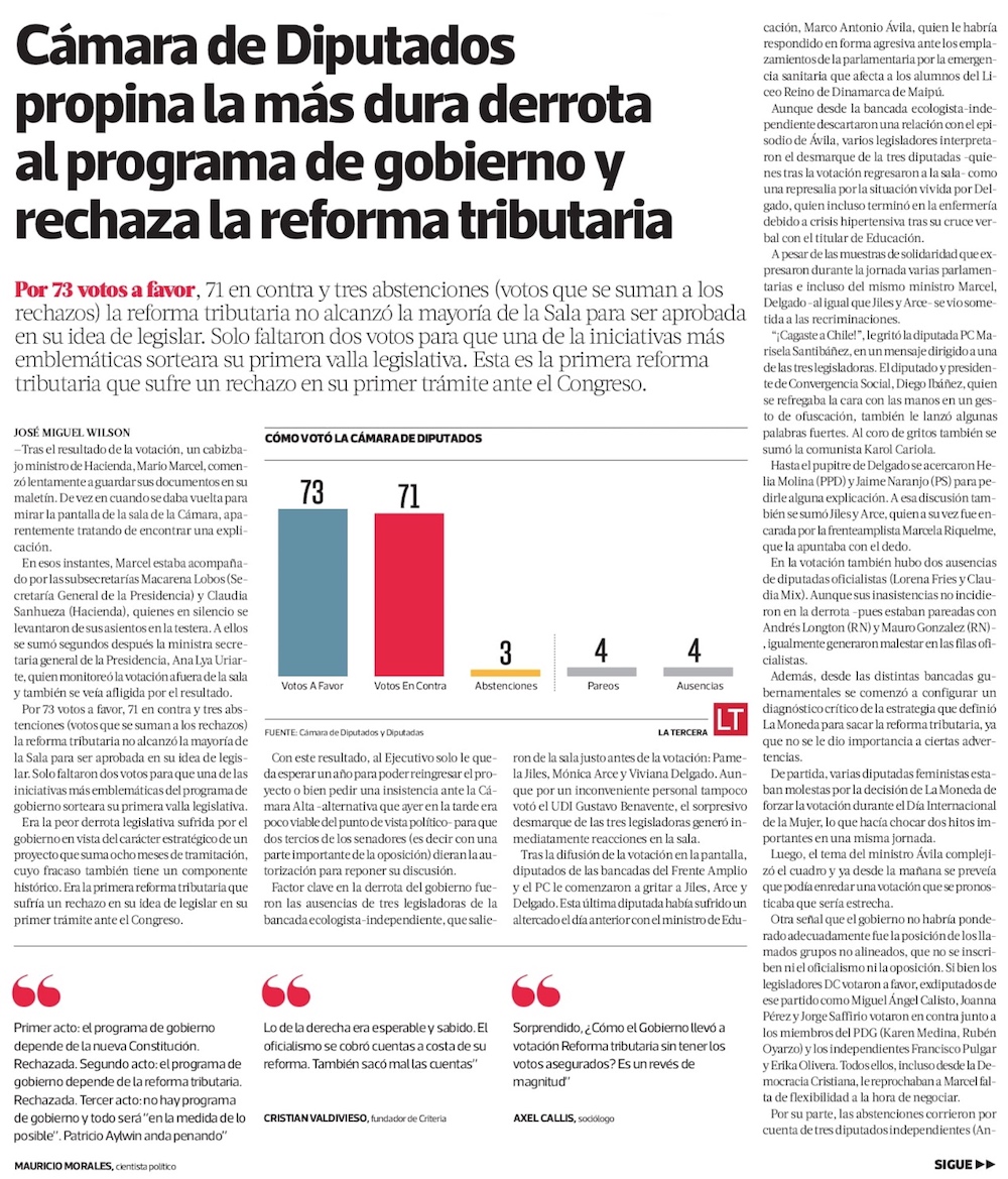 Duro revés para el Gobierno: Cámara de Diputados rechaza proyecto de reforma tributaria - (El Mostrador)