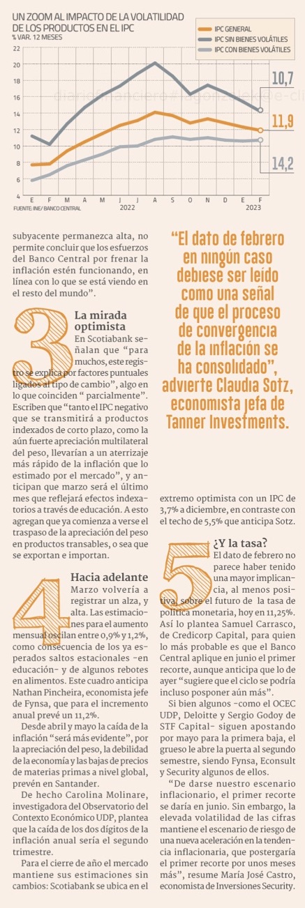IPC sorprende con caída de 0,1% en febrero, pero inflación sin componentes volátiles sigue alta - (El Mercurio de Santiago)
