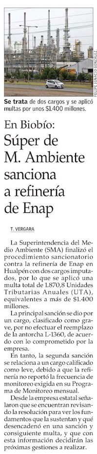 Multan a refinería Enap Biobío por incumplimientos ambientales - (El Sur)