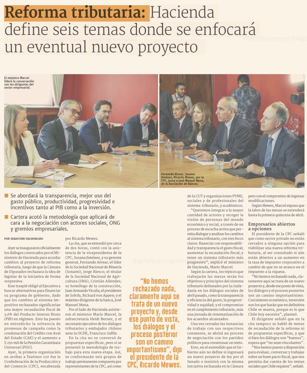 Reforma Tributaria: Hacienda define metodología para buscar acuerdos y CPC dice que tiene que ser procrecimiento y proinversión - (Pulso)
