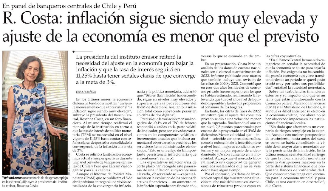 Ad portas del IPoM, Costa anticipa “un aumento de la inflación esperada para fines de año” - (Diario Financiero)