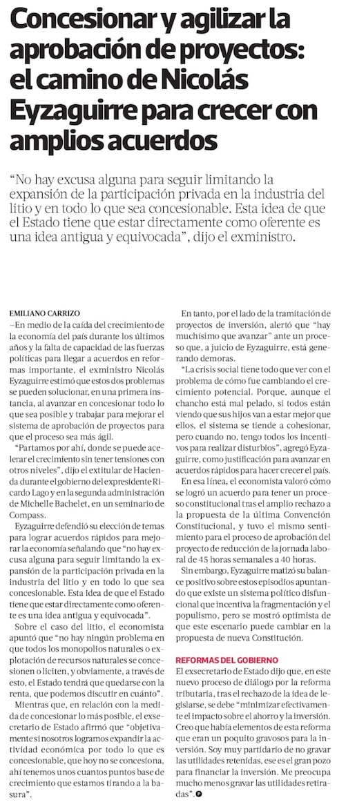 Concesionar y agilizar la aprobación de proyectos: el camino de Nicolás Eyzaguirre para crecer con amplios acuerdos - (Pulso Online)
