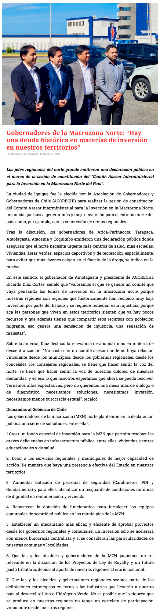 Gobernadores de Arica, Tarapacá, Antofagasta y Atacama: “Chile no puede perder el norte” - (iquiquevision.cl)