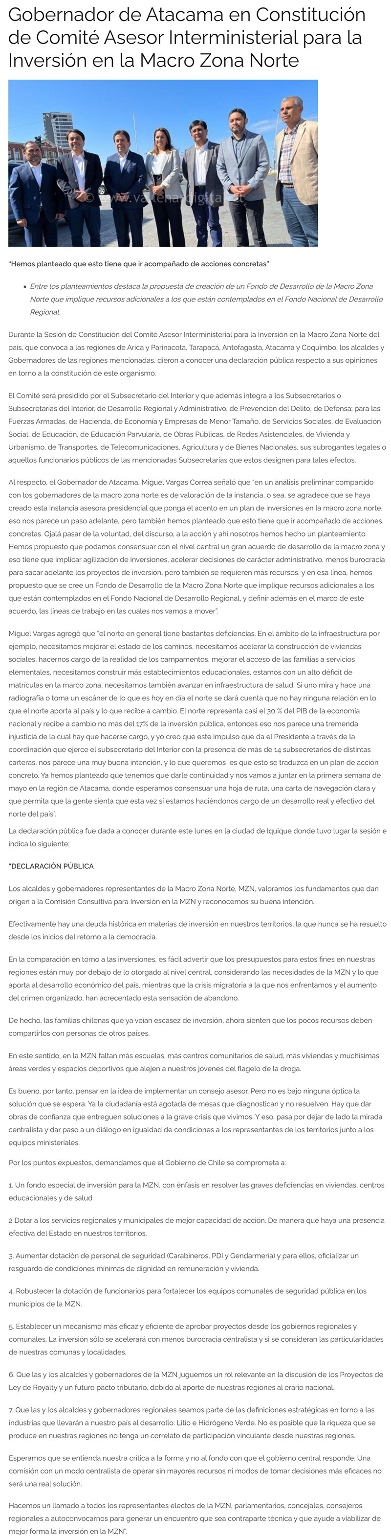 Gobernadores de la Macrozona Norte: “Hay una deuda histórica en materias de inversión en nuestros territorios” - (termometro.cl)