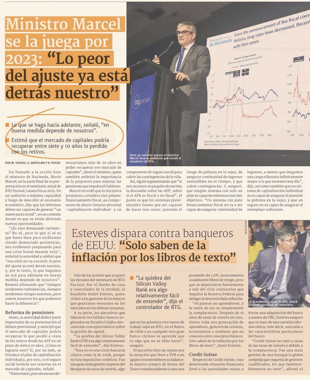 Marcel prevé recuperación de mercado de capitales entre 7 y 10 años tras retiros y alista envío de impuestos correctivos - (El Mercurio de Santiago)