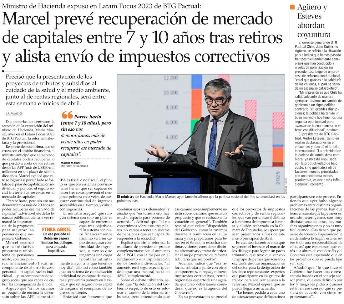 Ministro Marcel se la juega por 2023: “Lo peor del ajuste ya está detrás nuestro” - (Diario Financiero)
