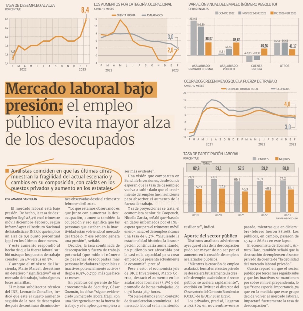Aumento de la fuerza de trabajo eleva tasa de desempleo a niveles de plena pandemia - (El Mercurio de Santiago)
