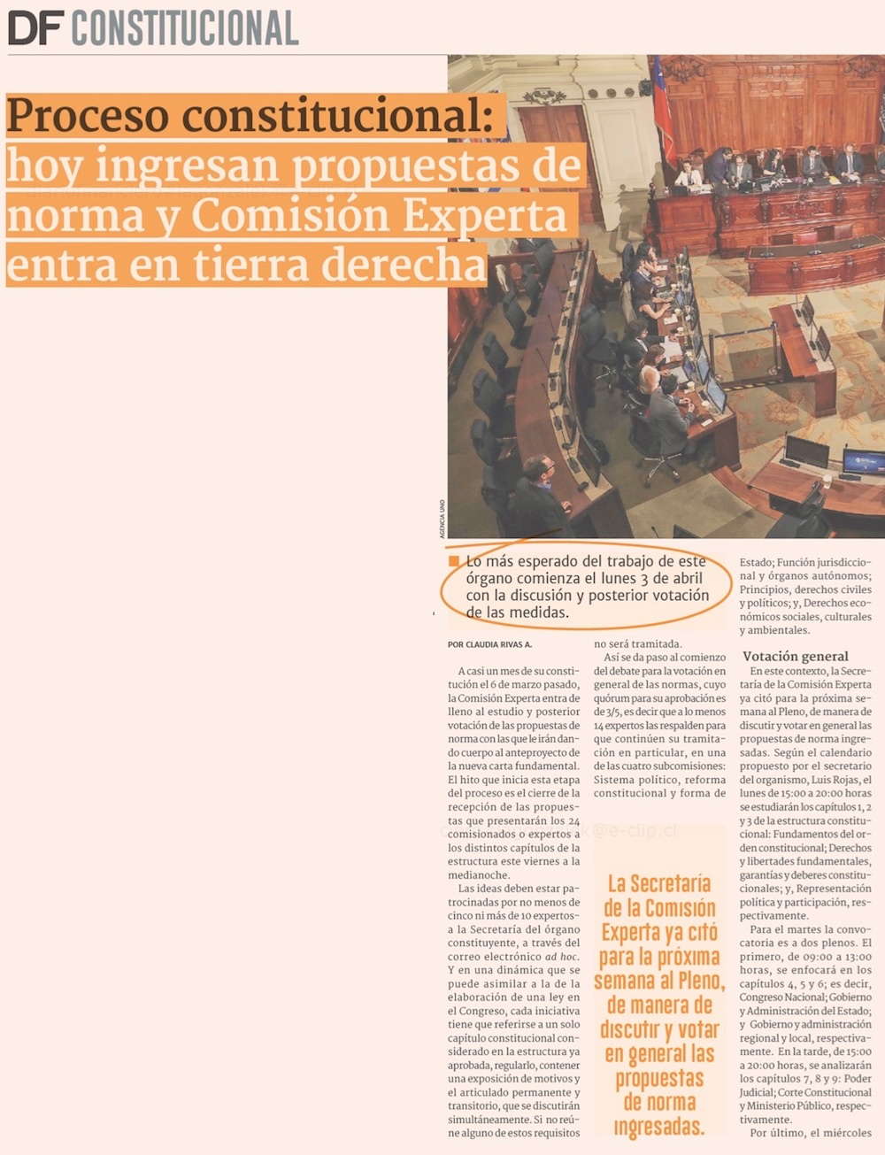 Comisión Experta ingresa propuestas de norma marcadas por cambios en el sistema político - (El Mercurio de Santiago)