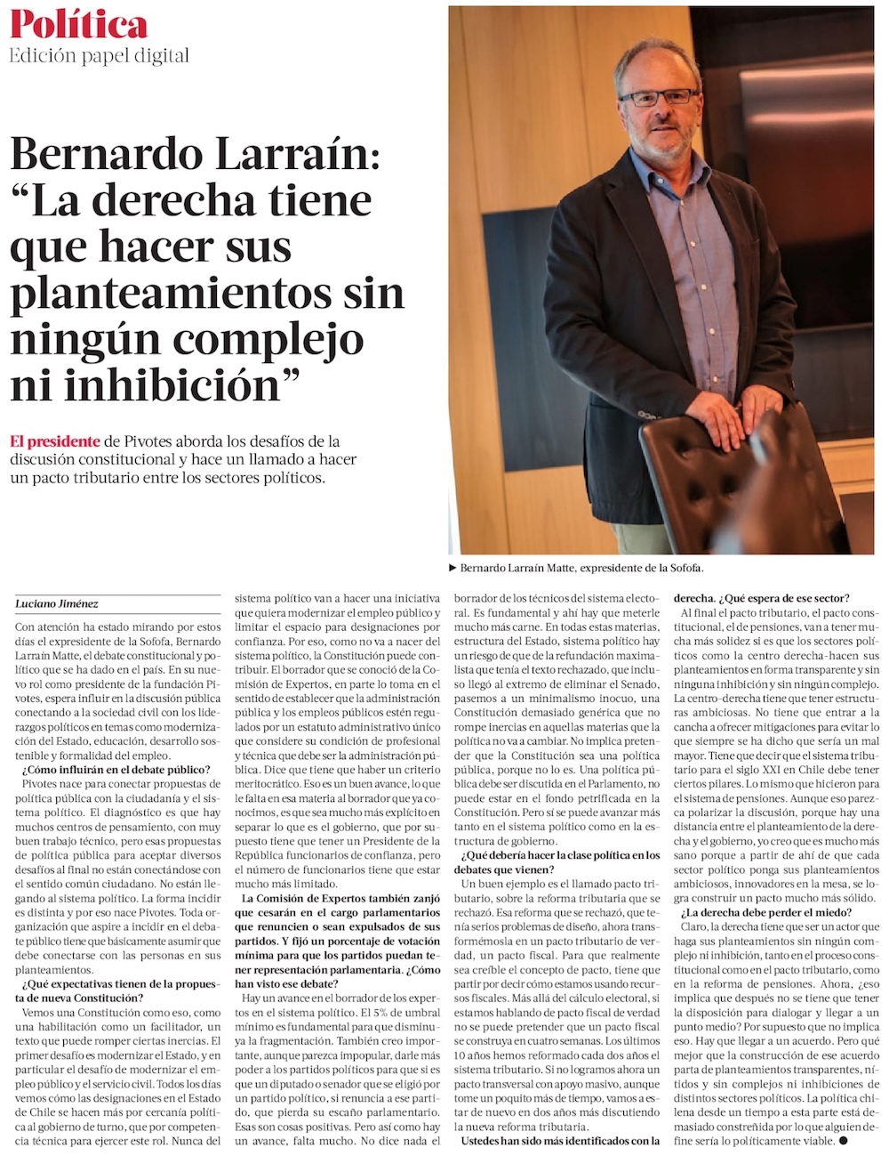 “Las bases del sistema electoral deben quedar en la Constitución y no están” - (El Mercurio de Santiago)