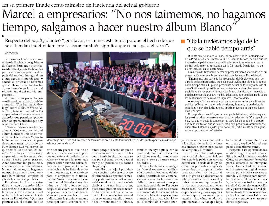 El mensaje del ministro Marcel: Chile puede duplicar su capacidad de crecimiento - (Diario Financiero)